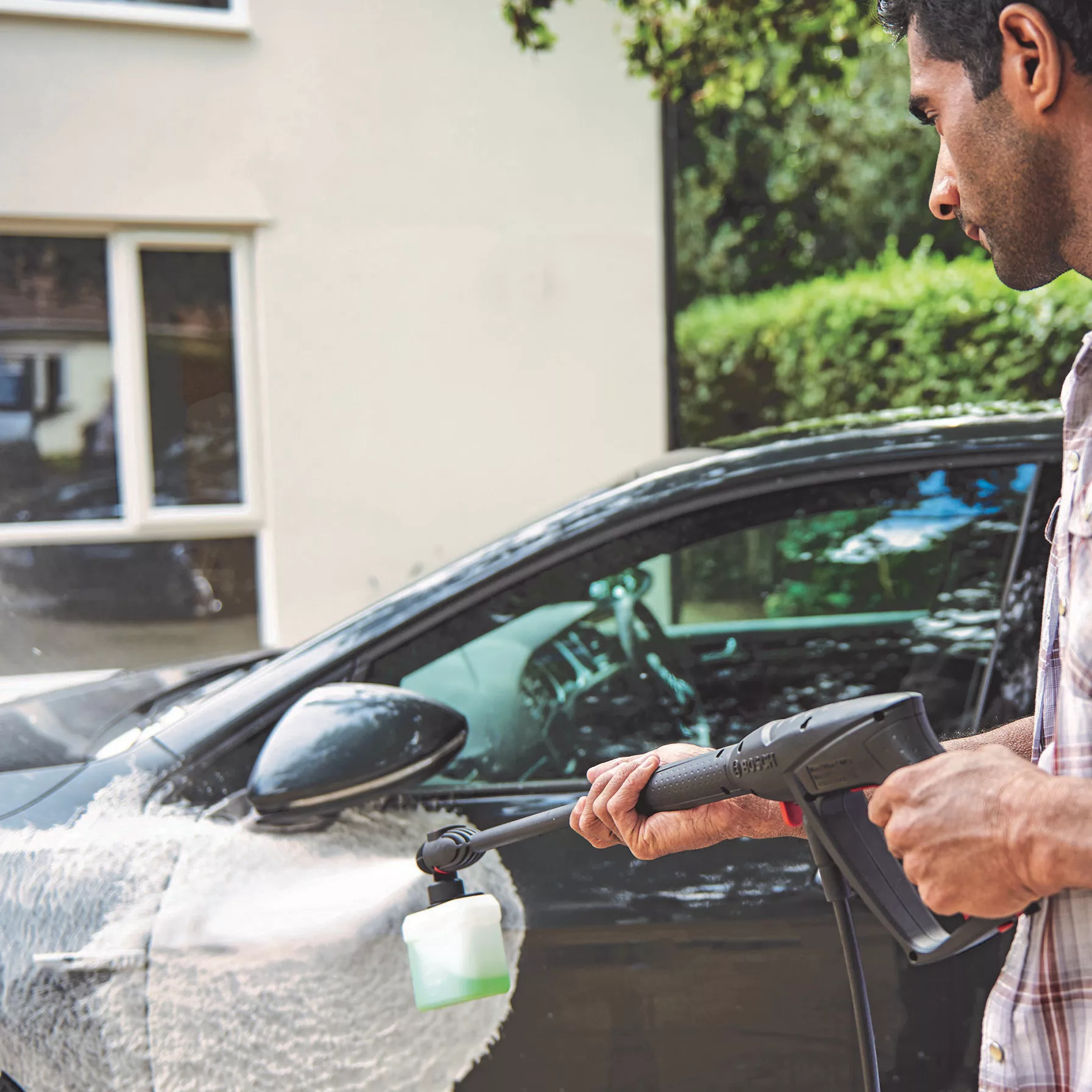 - 450-ml High-Pressure Detergent Nozzle saves time by applying soap quickly